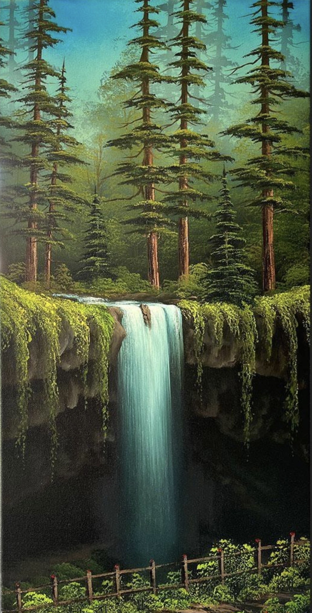 We will be painting “Silver Falls ” using Bobs wet on wet oil techniques on a 16×20” canvas that you will take with you. An excellent painting to hone your skills or learn some new ones.